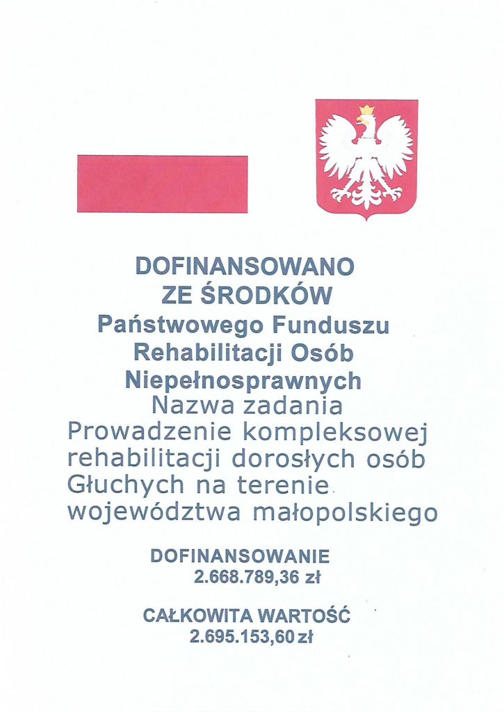 Nazwa projektu: Prowadzenie kompleksowej rehabilitacji dorosłych osób Głuchych na terenie województwa małopolskiego.